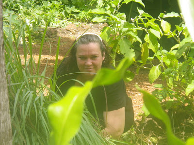 The green paw paw was on the ground knocked down my the jostling bats, I grabbed it for cooking or salads. I also took a piece of ginger that was on the ground maybe from a human pulling it out but not taking it home.